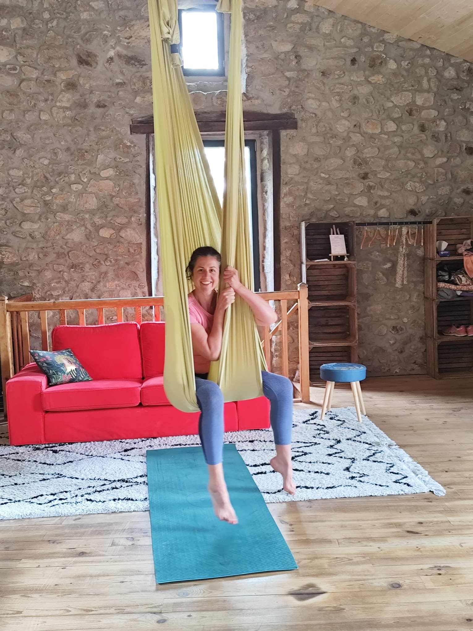 En plus de vous apporter tous les bienfaits du yoga au sol, le yoga aérien viendra approfondir vos étirements, augmenter davantage votre souplesse et l’amplitude de vos mouvements grâce au soutien du hamac.